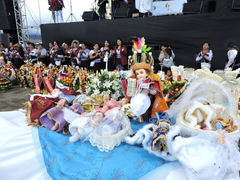 Participantes de esta festividad fueron ataviados con sus trajes autóctonos: sombrero, poncho rojo, pantalón blanco y zamarro.