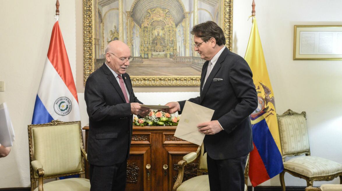 El nuevo embajador de Ecuador en Paraguay Santiago Patricio Apunte entregó sus cartas credenciales al canciller Eladio Loizaga en un acto en Asunción tras el que explicó que seguirá la línea continuista para mantener con los intercambios comerciales y políticos entre ambos países.