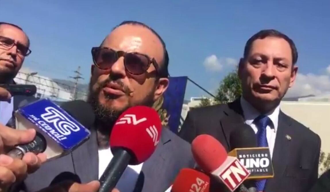 El abogado Milton Castillo junto al asambleísta César Carrión (CREO) presentaron esta mañana en Quito una denuncia contra el presidente del Consejo de la Judicatura, Gustavo Jalkh por supuesto tráfico de influencias en la Unidad Judicial de San Cristobal, Galápagos.