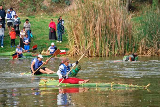 Desde 1993 se realiza la travesía al lago San Pablo en caballitos de totora, evento que cada año viene despierta el interés del público y de los participantes. Es una de las principales actividades de las festividades de parroquialización de San Rafael de la Laguna, indica el portal lahora.com.ec.