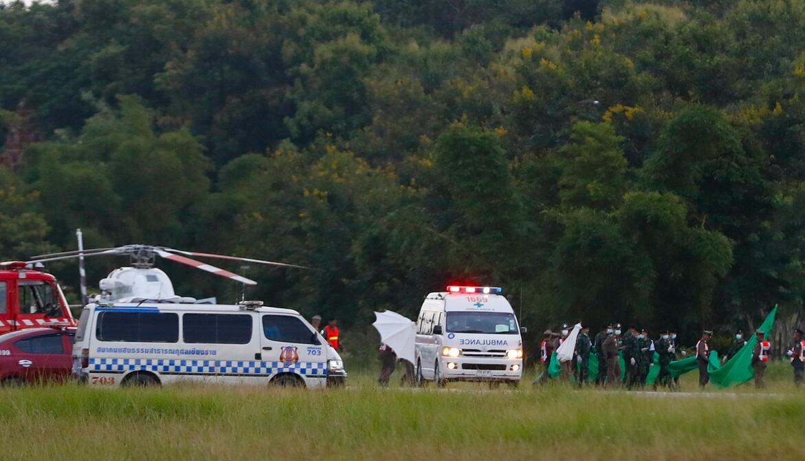 Los 12 Jabalíes Salvajes y su entrenador fueron evacuados de la cueva, anunció el cuerpo de élite de la marina tailandesa.