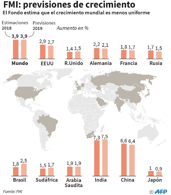 El FMI confirmó que espera para 2018 un crecimiento mundial del 3,9%.