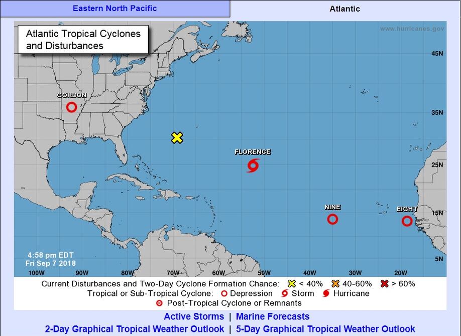 La tormenta tropical Florence podría causar fuerte oleaje y corrientes de resaca en partes de la costa este de Estados Unidos este fin de semana, según meteorólogos del Centro Nacional de Huracanes.