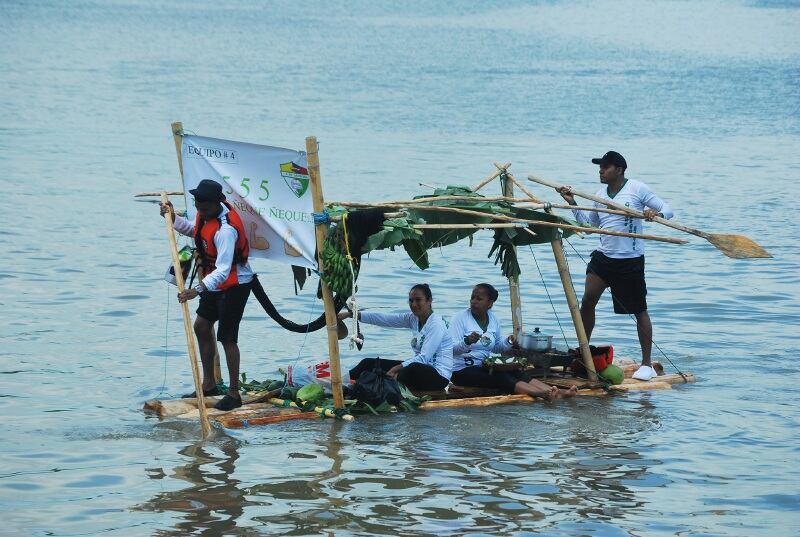 Como parte de la competencia se preparó un plato típico sobre las balsas elaboradas.