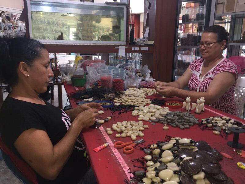 Los colores llaman la atención en las perchas de los negocios de Sosote, comunidad situada en la vía Portoviejo-Crucita, en especial de las mujeres que desean lucir las accesorios de tagua que ahí se comercializan desde 1 dólar.