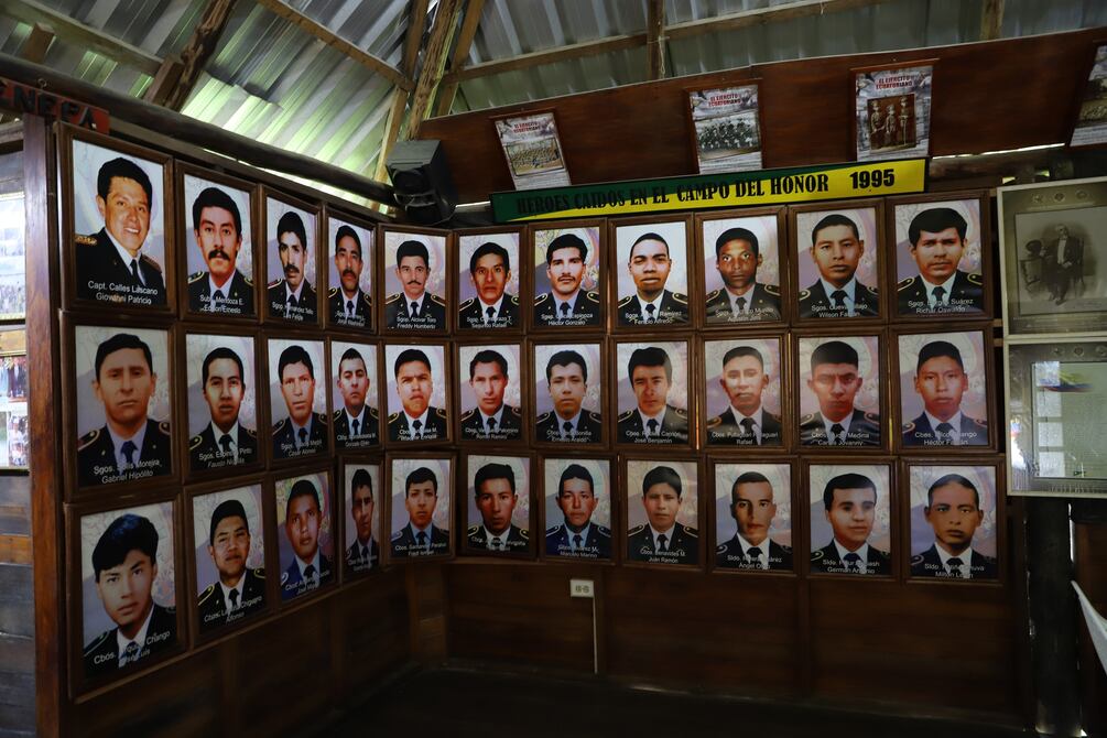 Una galería con tres hileras de fotos a color resaltan al ingreso de la sala. Los retratados visten sus sobrios trajes de parada. Y cada uno está identificado con su nombre y los rangos que tenían en el Ejército antes de morir por la patria.