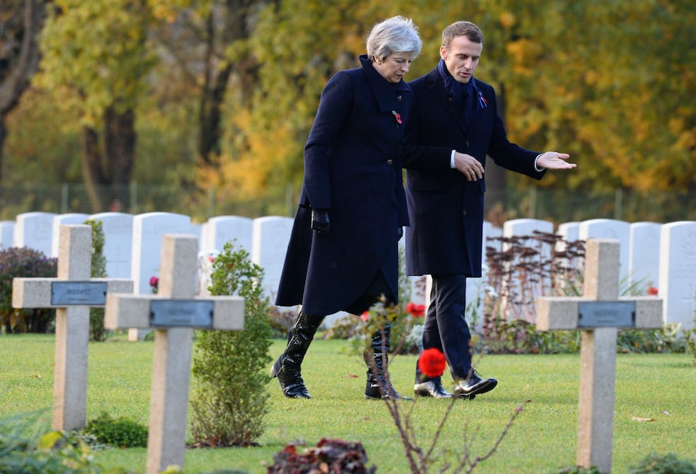 El presidente francés, Emmanuel Macron, y la primera ministra británica, Theresa May, rindieron este viernes un homenaje a los caídos en la batalla del Somme en el marco de las conmemoraciones por el centenario del fin de la Primera Guerra Mundial, y entre tensiones a pocos meses del Brexit.