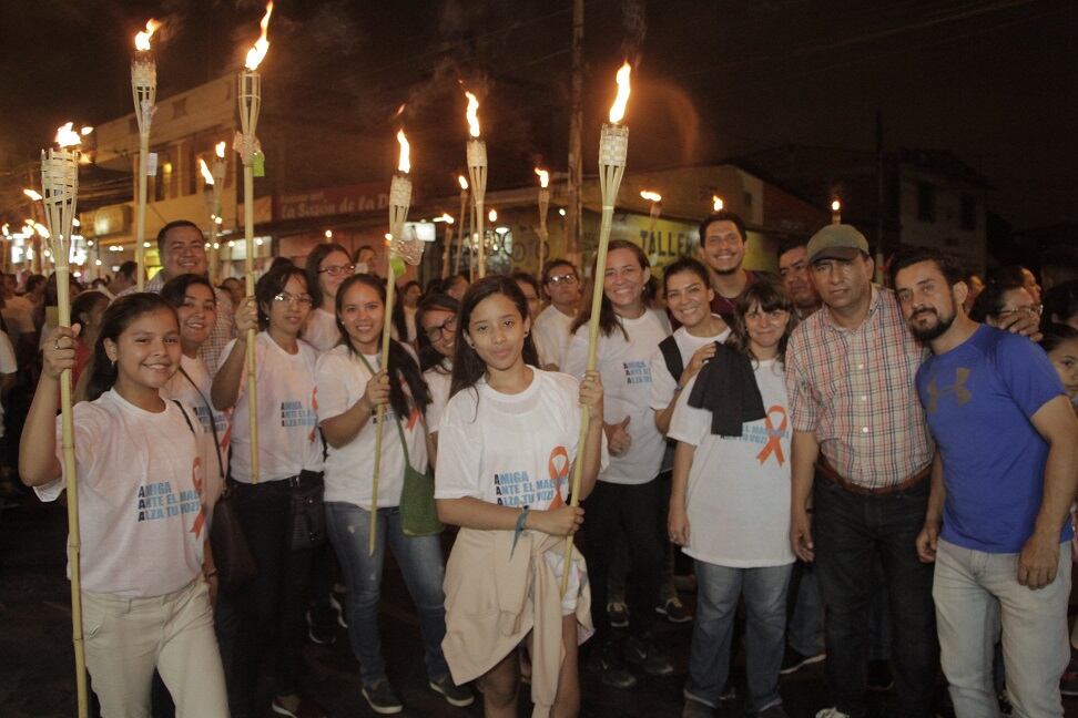Decenas de mujeres duraneñas vistieron camisetas blancas para participar de una marcha de antorchas y con un mensaje de no violencia de género.