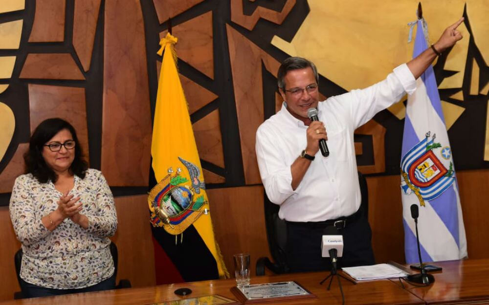 Jimmy Jairala se despidió este miércoles del personal de la Prefectura del Guayas que lo acompañó durante una década en el cargo de prefecto, al que renunció el martes para candidatizarse para la Alcaldía de Guayaquil por su movimiento Centro Democrático.
