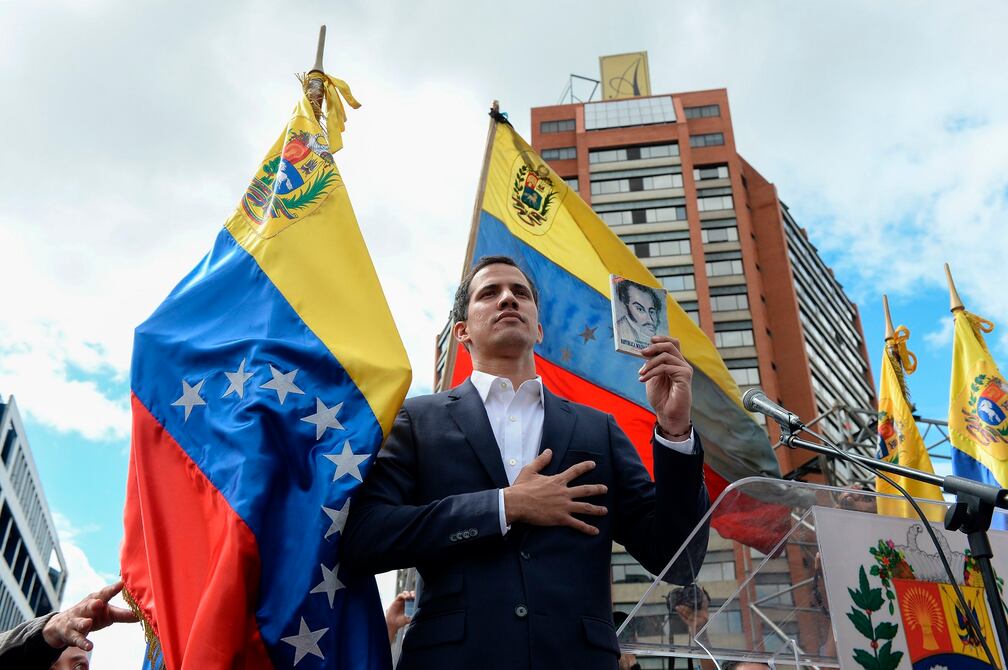 Guaidó, de 35 años, alzó la mano derecha y dijo que daba ese paso ante cientos de miles de venezolanos en una zona del este de Caracas.