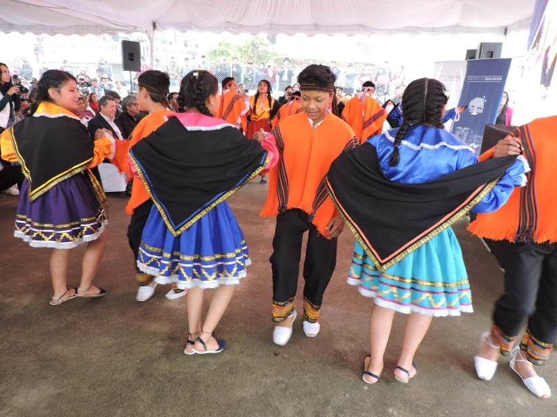 La reapertura de la escuela Río Cenepa en la comunidad Tauri, cantón Chunchi, provincia de Chimborazo, que se cumplió el jueves 7 con la presencia del ministro de Educación, Milton Luna, fue propicia para la presentación del grupo de danza de la unidad educativa Ciudad de Alausí.