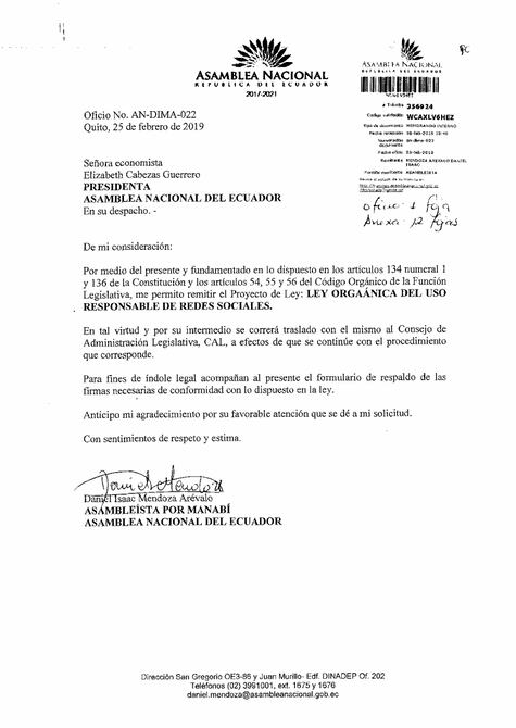 La propuesta del asambleísta afín a Alianza PAÍS, Daniel Mendoza, para regular la difusión en redes sociales el discurso de odio, noticias falsas y privacidad de datos no tiene respaldo en los bloques PSC, CREO y SUMA.