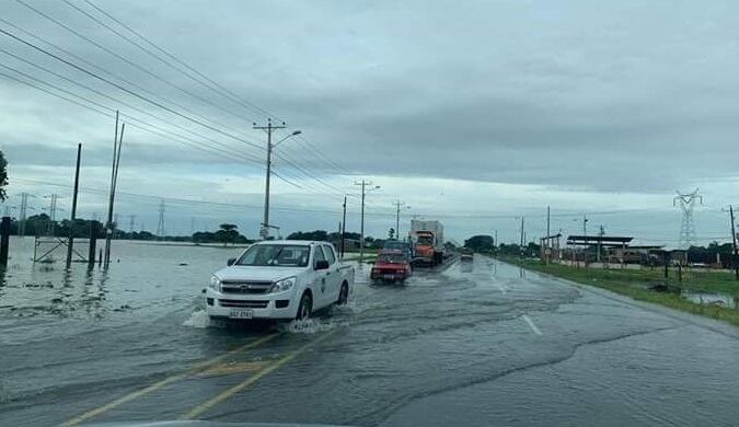 La carretera E25 de la vía Babahoyo-Jujan se encuentra anegada a la altura del km 55.