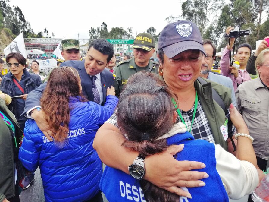 Escenas de llanto y dolor fueron evidentes durante el encuentro en el puente internacional de Rumichaca.