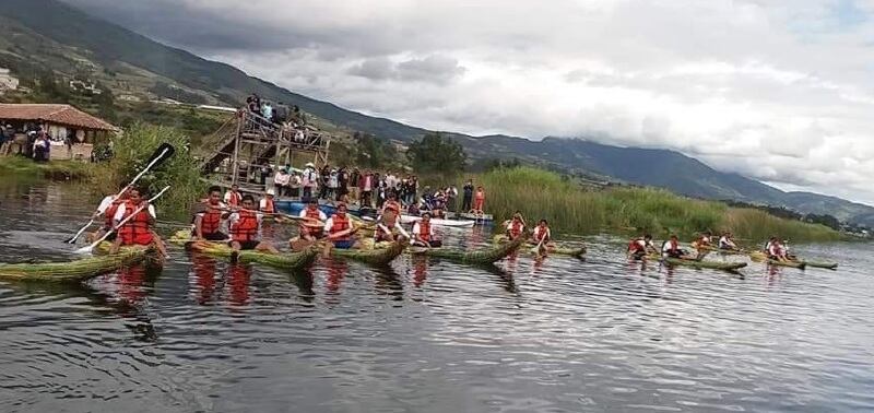 Las balsas artesanales elaboradas con totora, más conocidas como caballitos de totora, atravesarán nuevamente el lago San Pablo, este domingo.