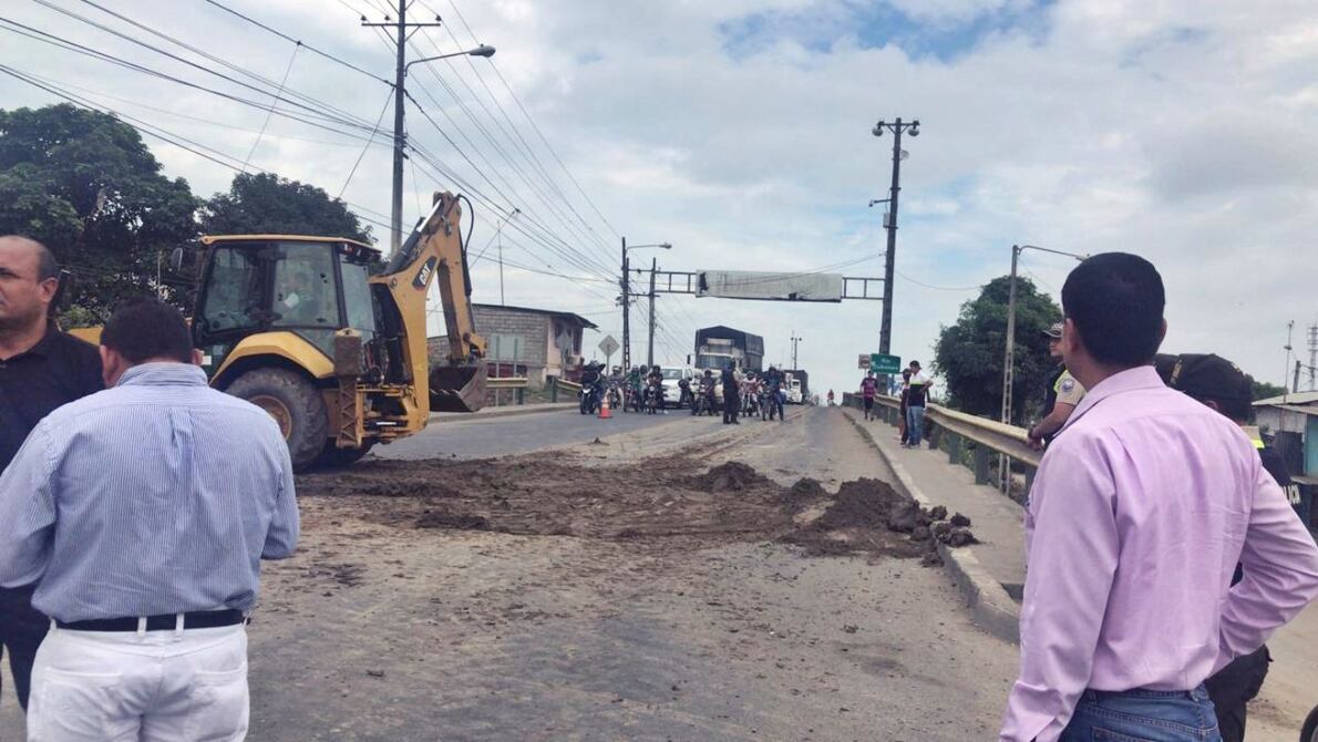 Desde las 09:00 de este jueves estuvo cerrada la vía Machala - El Guabo, a la altura del puente de La Iberia, donde un grupo de personas colocaron montículos de tierra para impedir el paso vehicular; luego de las 10:30 se habilitó el paso.