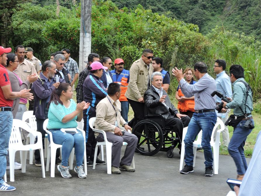 El presidente Lenín Moreno cumple agenda en el reasentamiento de Baños.