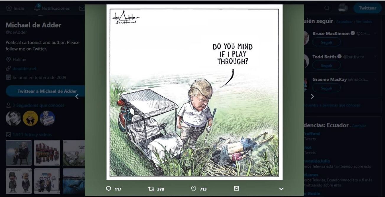 El grupo canadiense Brunswick News es acusado de despedir a un caricaturista por subir, en sus redes sociales, una viñeta que critica fuertemente la política migratoria de Trump.