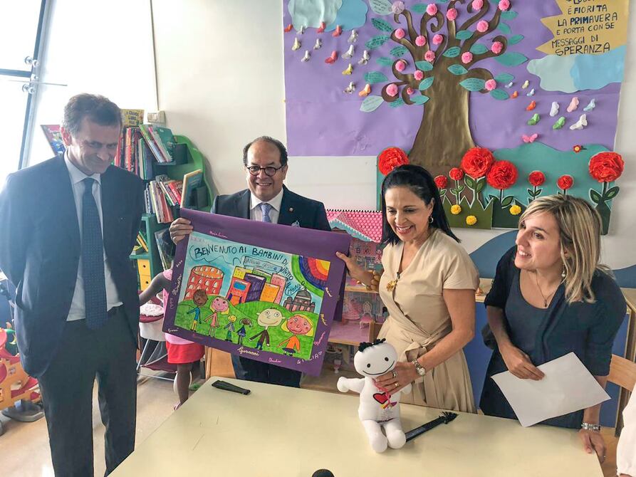La primera dama Rocío González de Moreno, presidenta ad honorem del Comité Interinstitucional del plan Toda una Vida, visitó el hospital pediátrico Bambino Gesú (HPBG), en Roma, donde firmó como testigo de honor el memorándum de entendimiento con esta casa de salud, para fortalecer y desarrollar cooperación en áreas concretas de asistencia pediátrica en el Ecuador.