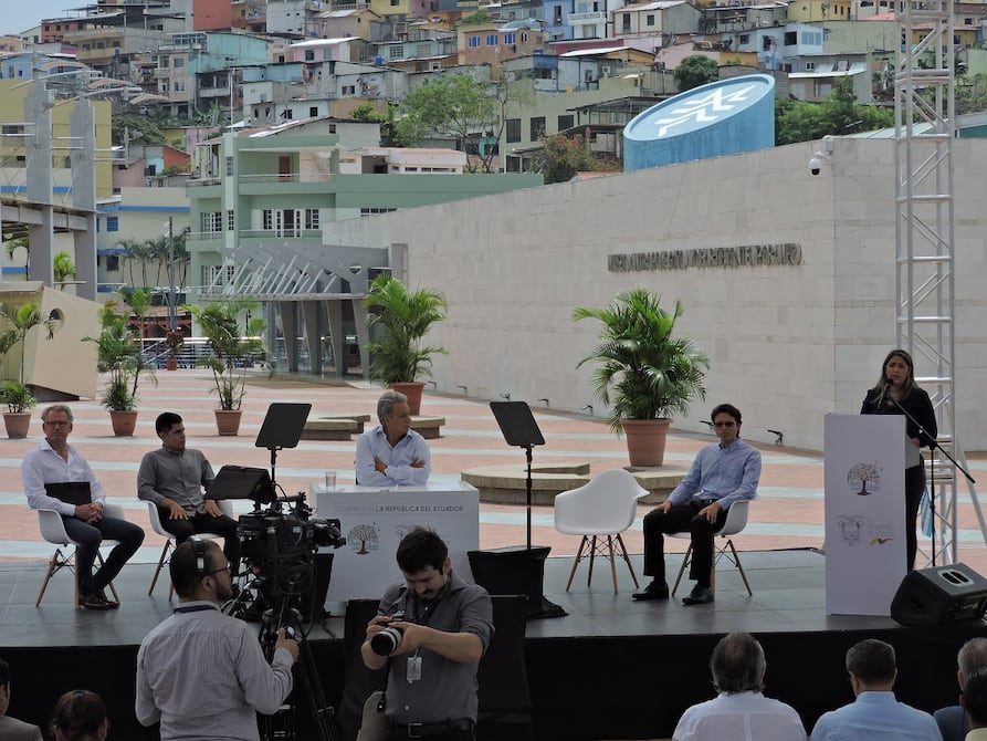 La explanada del Museo Antropológico y de Arte Contemporáneo (MAAC), en el malecón Simón Bolívar, fue al mediodía de este martes el escenario para la presentación oficial del crédito educativo social para los beneficiarios con procesos de coactiva.