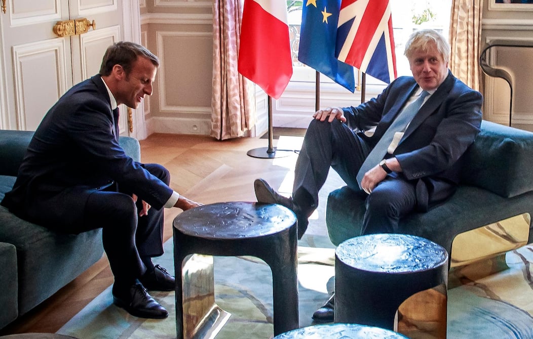 Puede que el primer ministro británico, Boris Johnson, haya tardado un mes en realizar su primer viaje al extranjero, pero no necesitó mucho tiempo para sentirse como en casa en el palacio que habita el presidente francés, Emmanuel Macron, ya que no dudó en poner los pies sobre la mesa al llegar.