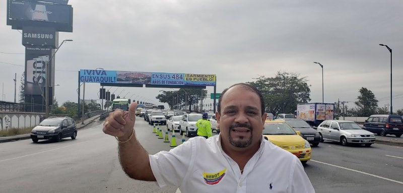 Canta, baila, ríe, agasaja y reparte comida, víveres, juguetes, sillas de ruedas... a niños, madres de familia y adultos mayores de escasos recursos económicos. Se identifica preferentemente como ‘Sarmiento es pueblo’. No es candidato a nada aún y no hay campaña electoral en curso, pero su eslogan ya aparece en murales y carteles en varios sectores de la ciudad y en otros cantones como Durán.