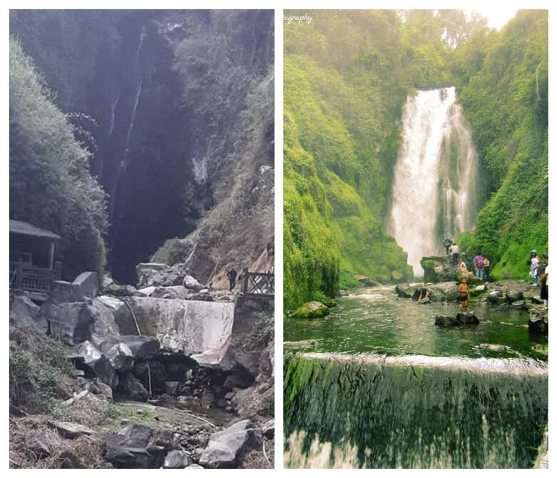 La falta de agua en la cascada se produjo por un derrumbe en la parte alta de la zona, que taponó un caudal.