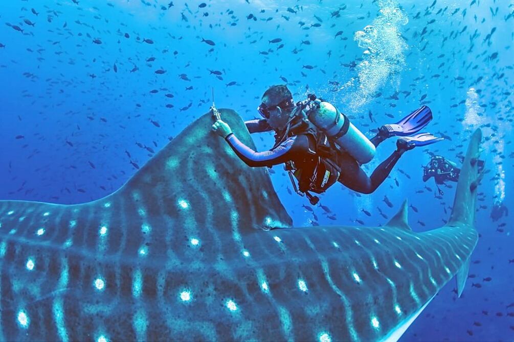 Con información recolectada durante 10 días de viaje a la isla Darwin, al norte de las islas Galápagos, un grupo de investigadores intenta descubrir los patrones de comportamiento y movimientos del tiburón ballena, a fin de obtener datos relevantes que permitan tomar medidas para su conservación.