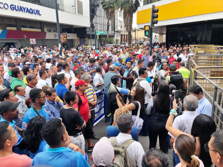 Los transportistas de buses y taxis se concentraron este lunes en el Parque Ismael Pérez Pazmiño, desde donde salieron en marcha hacia los exteriores de la Gobernación de El Oro.