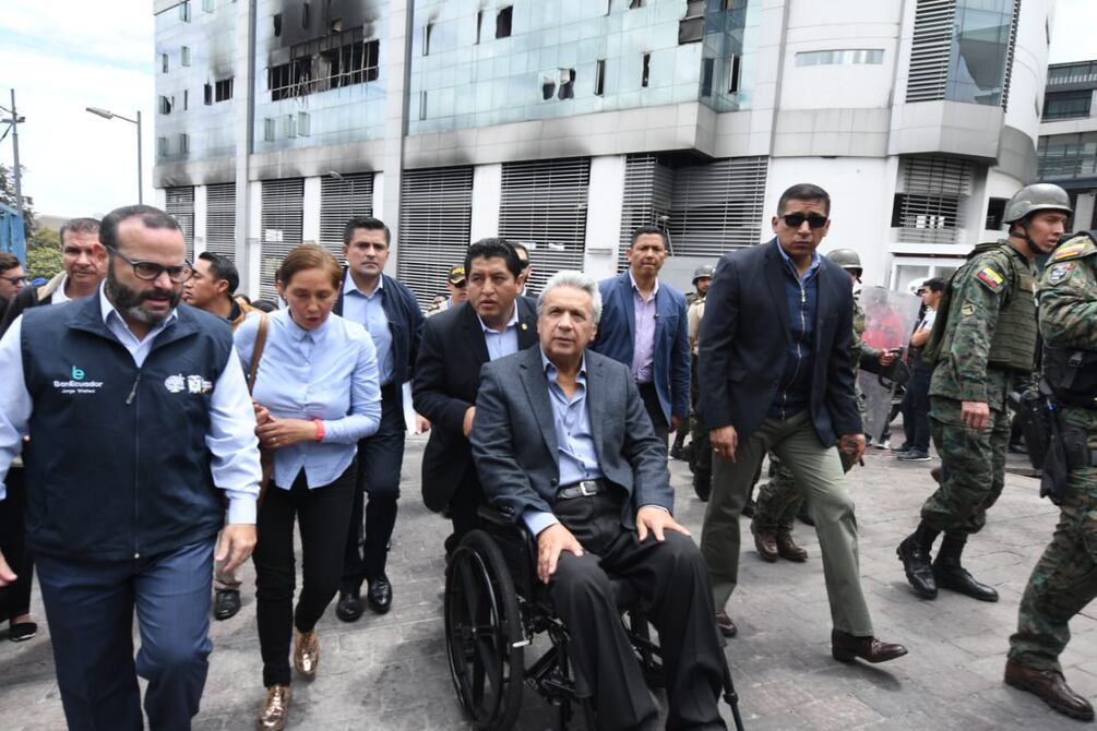El presidente Lenín Moreno recorrió algunos negocios afectados por las manifestaciones ocurridas entre el 3 y 11 de octubre alrededor de la Contraloría General del Estado, ofreció su apoyo a los comerciantes del sitio y aprovechó para comentar sobre lo ocurrido en el edificio de la entidad de control y los once días de paralización.