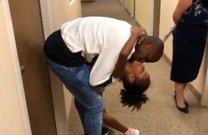 La niña sale de una habitación y corre a abrazar con fuerza a su padre que la espera en un pasillo. El video de catorce segundos corresponde a un fragmento del encuentro que tuvo Enner Valencia con su hija en Estados Unidos.
