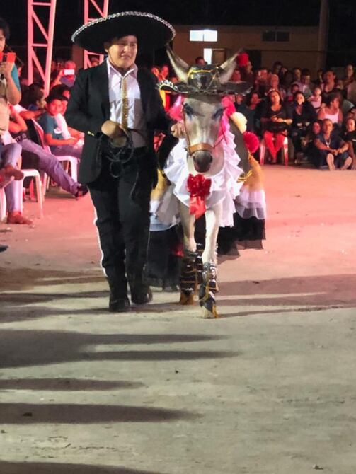 Siete candidatas disputaron el cetro de la burra mejor vestida, actividad que se hizo en el centro de la comunidad Danzarín, cantón Rocafuerte, la noche del sábado último.
