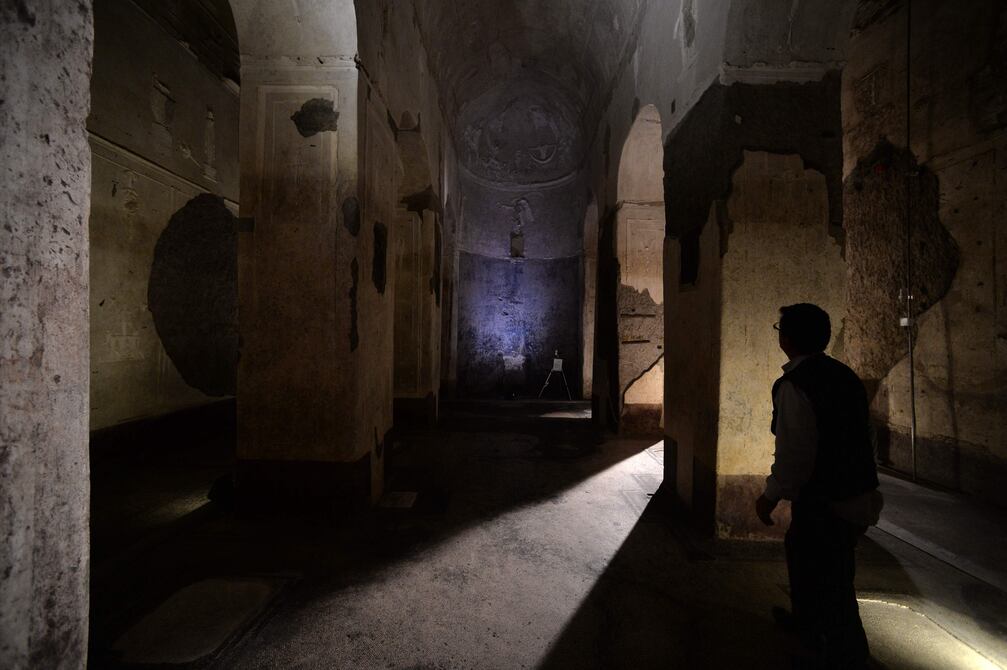 Este martes, se develó una nueva fase de la restauración de una misteriosa basílica pagana subterránea de mediados del siglo I, descubierta en 1917 bajo la línea del ferrocarril, en Roma.