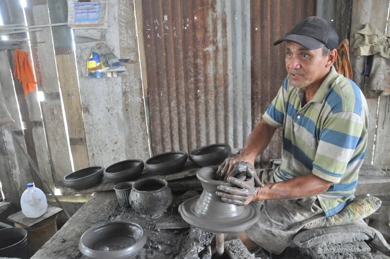 Édison Vera Vásquez, de 65 años, es un alfarero que aún mantiene este oficio ancestral en su taller, en la cdla. Las Trancas, sector San Vicente.