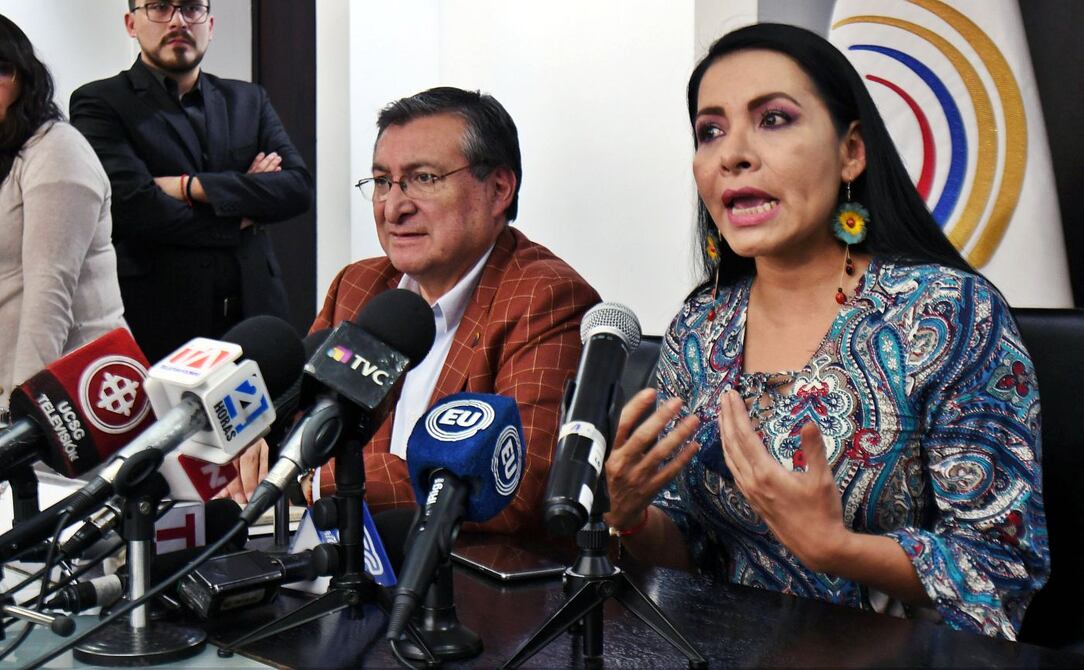 Dos asambleístas del movimiento CREO, Jeanine Cruz y Fernando Flores, presentaron este martes en la Fiscalía una denuncia por el delito de tráfico de influencias contra la presidenta del Consejo Nacional Electoral (CNE), Diana Atamaint; el exdirector de procesos electorales del CNE, Luis Loyo y otras personas.