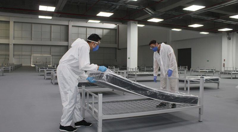 La colocación de estaciones de enfermería, área de tomas de muestra, farmacia, bodega, área de carga y descarga, división de paneles, será una de las últimas labores, en el Centro de Atención Temporal "Quito Solidario", del Municipio capitalino. Está ubicado en el parque Bicentenario, al norte de la urbe