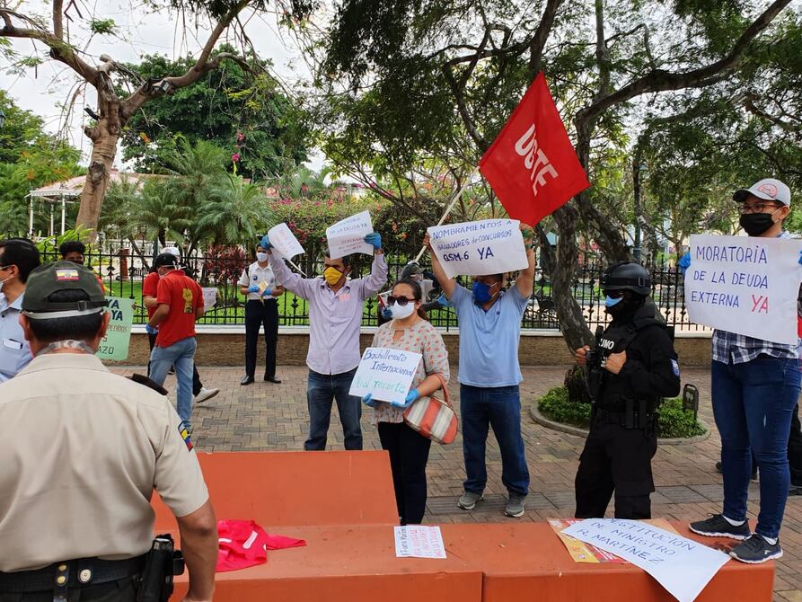 Un grupo de más de 30 personas, entre representantes estudiantiles de colegios y universidades y de la Unión Nacional de Educadores, protestó en los bajos de la Gobernación en contra de la disminución del presupuesto destinado principalmente a universidades.