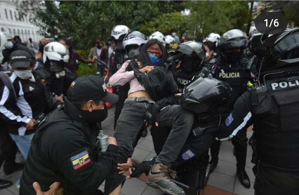 Un joven fue detenido esta tarde durante la manifestación realizada por estudiantes y autoridades de la Universidad de Cuenca en rechazo al anuncio de recorte presupuestario por parte del Ministerio de Economía y Finanzas. La versión de los protestantes fue que la detención fue arbitraria, pero desde la Policía se aseguró que en su poder tenía “una sustancia vegetal verdosa (…)”, según consta en el parte.