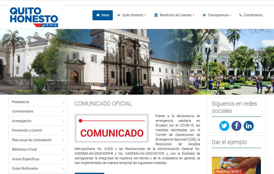 Según la información de esta web, Quito Honesto es el nombre de la Comisión Metropolitana de Lucha Contra la Corrupción, conformada por 35 servidores y funcionarios.