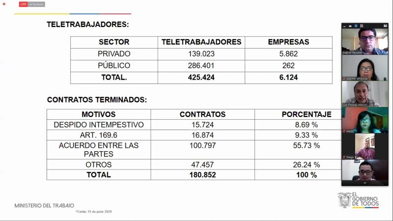 425 424 personas al momento cumplen sus labores en la modalidad virtual de teletrabajo en todo el país.