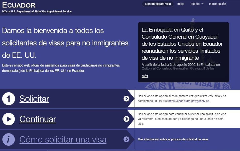 Desde el pasado 3 de agosto, Estados Unidos, a través de su embajada y consulado en Ecuador, reanudó las renovaciones de visa de no inmigrante que aplican bajo el programa de exención de entrevista.