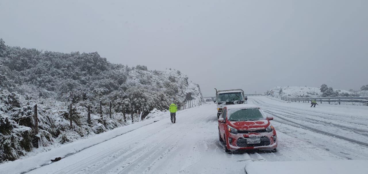 La vía Pifo - Papallacta, a la altura del sector La Virgen, se encuentra cerrada la mañana de este viernes, debido a la presencia de nieve en la calzada.