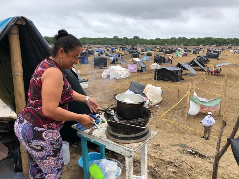 Con cañas, maderas y plásticos, más de mil personas construyen pequeñas cabañas provisionales que les permite protegerse del frío durante las noches.