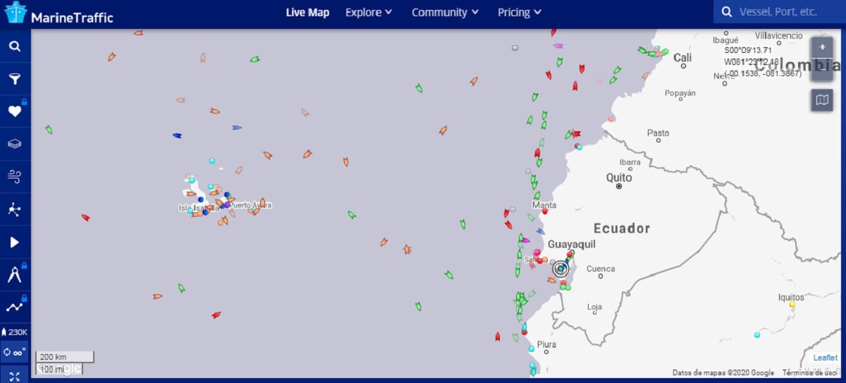 Un reporte de la organización internacional Oceana demuestra que en tan solo un mes (del 13 de julio al 13 de agosto) 294 de los 340 barcos, en su mayoría chinos, que integran la flota que se encontraba en el límite de la Zona Económica Exclusiva (ZEE) del Ecuador continental y de la ZEE insular acumularon un total de 73 058 horas de pesca.