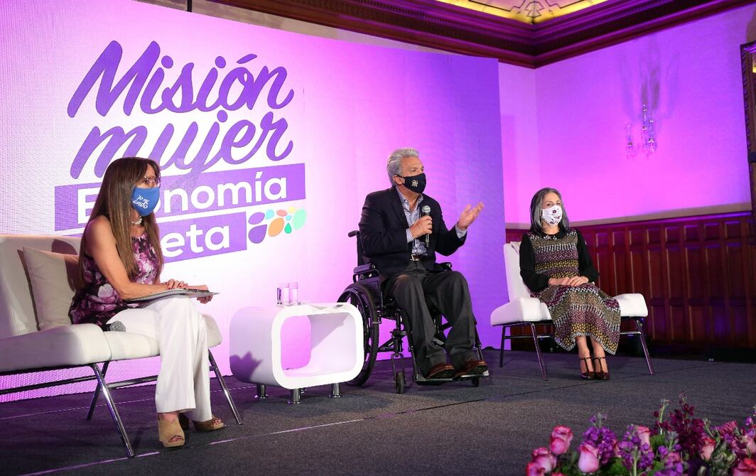Hoy, el gobierno de Lenín Moreno presentó la política pública "Economía Violeta", que es parte de Misión Mujer del Plan Toda una Vida y que articula los programas de emprendimiento, productividad, asistencia técnica y créditos, con el apoyo del sector público, privado y asistencia internacional, para la reactivación económica post pandemia COVID-19 con enfoque de equidad de género.