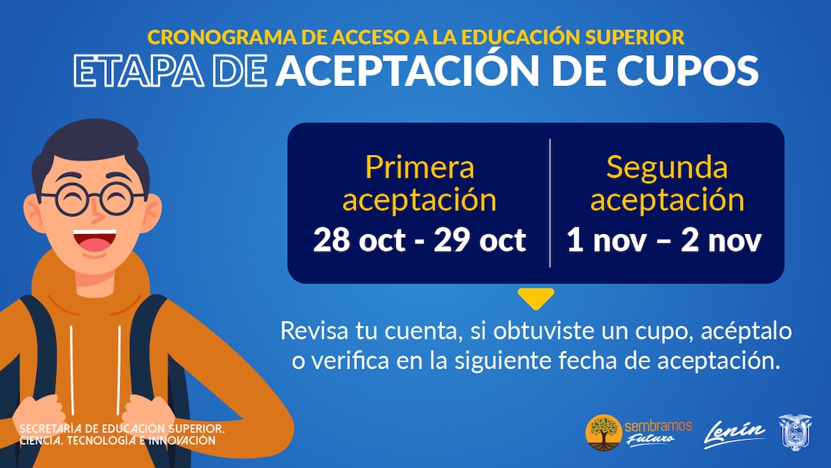 Entre este miércoles y jueves las personas que dieron sus opciones para obtener un cupo en una carrera universitaria en instituciones públicas y privadas con política de cupos deberán aceptar el mismo.