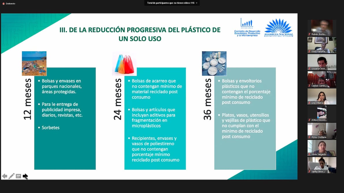La Asamblea Nacional aprobó con 129 votos, el proyecto de Ley que busca reducir la utilización y el comercio de material plástico de un solo uso como bolsas, sorbetes, envases para bebidas y alimentos, los mismos que pasarán a tener un costo para el usuario.