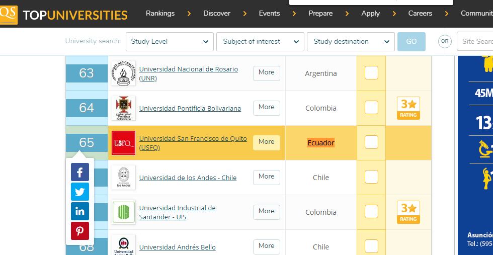 ¿En qué puesto aparecen universidades ecuatorianas?