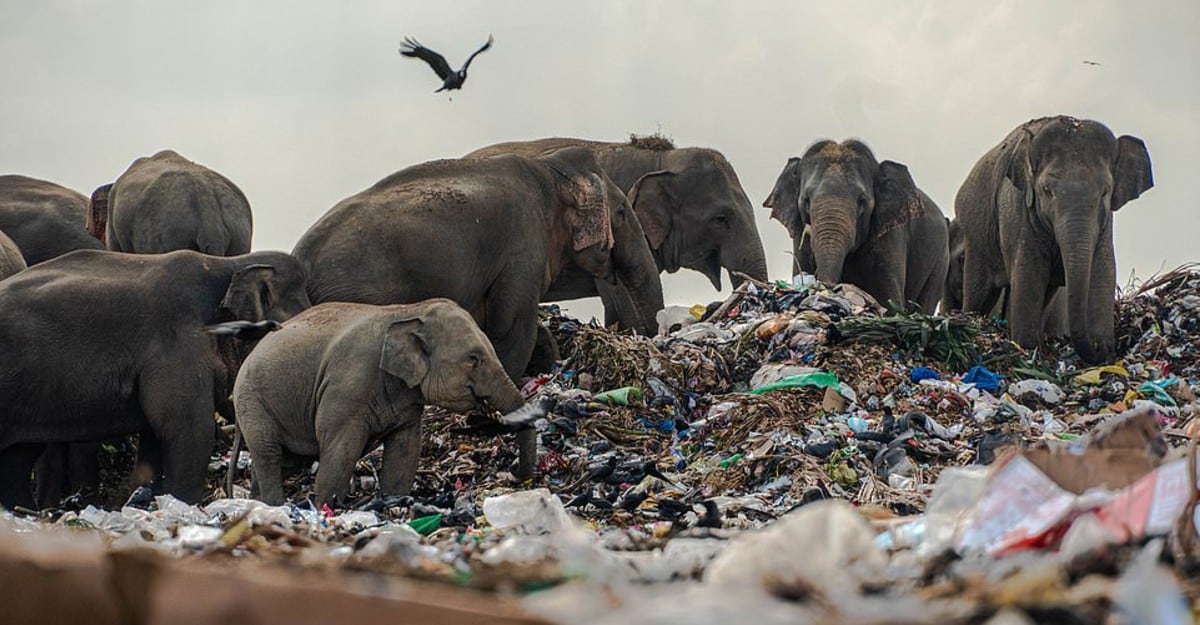 Un dron captó imágenes desoladoras en Sri Lanka, Asia. Todos los días al menos una docena de elefantes salen de la jungla para buscar comida en vertederos de basura, reseña el diario español El País.