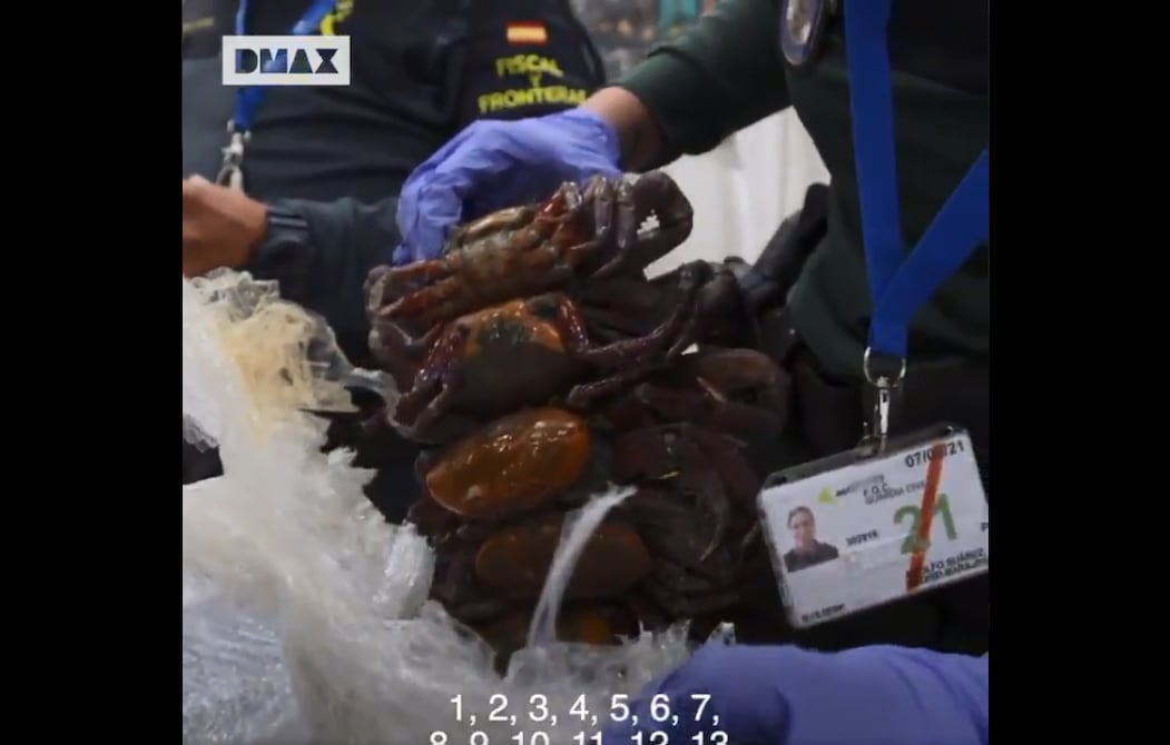"¿De dónde viene caballero?", una guardia civil española interpela a un viajero en un aeropuerto del país europeo.